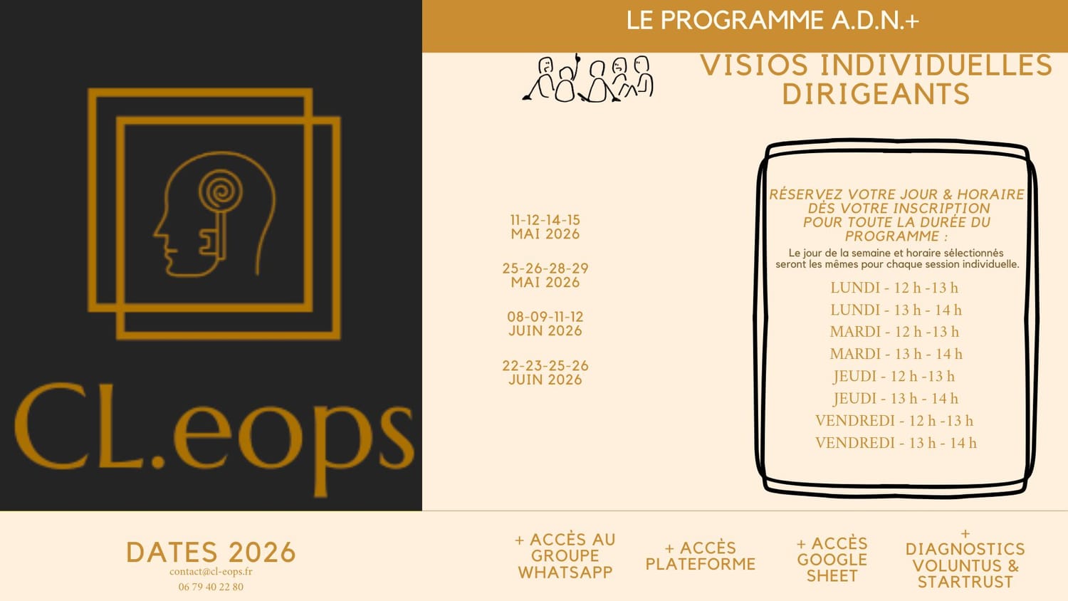 Le programme A.D.N.+ est un programme unique car il s'appuie sur 25 ans d'expérience en management d'équipes, et associe différents outils, méthodes et formats complémentaires permettant d’inscrire des changements dans la durée grâce à leur innovation et leur association, à savoir :
